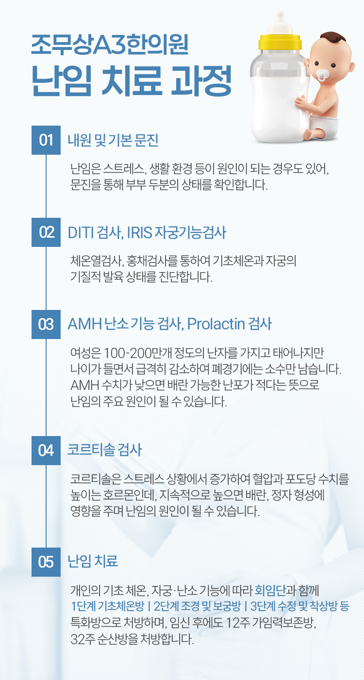 난소 및 자궁의 기능을 강화시키고, 건강한 착상 환경을 만든 뒤, 향상된 생식 능력의 도움으로 임신을 시도하다 보면 안정적인 임신과 출산을 기대하실 수 있을 거라고 말씀을 드립니다. 주로 진행이 되는 것은 한약 처방이라지만 필요에 따라 침요법과 약침요법까지 병행을 하실 수 있으니 이 부분도 참고해 주시길 바랍니다.